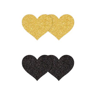 Black & Gold Glitter Heart Pretty Pasties set of two