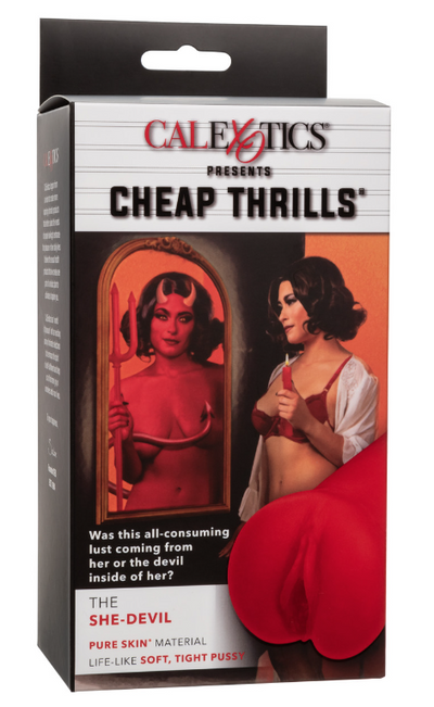 Give into your most sinful fantasies and watch your passions ignite with the Cheap Thrills® The She Devil stroker. The closed-end design provides superior suction, while the uniquely textured chamber and ultra soft, stretchy Pure Skin® material thrills with life-like sensation.