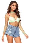 Pretty Please High Neck Long Sleeved Fence Net Bodysuit with Snap Crotch