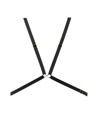 Sometimes the recipe to be the ultimate femme fatale lies in a tiny little strap that transforms any bodysuit, catsuit or even t-shirt from normal to extra-ordinary!! Of course, the best way to wear this is bare, but it’s always nice to have the option to offer some teasing, mixed with outer wear. Adjustable halter neck and under bust straps. Back neck opening with center front hook.