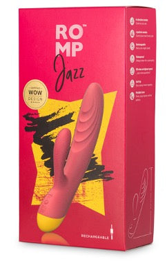 The new rabbit vibrator from ROMP will take you over the edge! Jazz features 6 intense vibration modes and 4 unique pattern modes for mind-blowing dual stimulation with every press of a button.