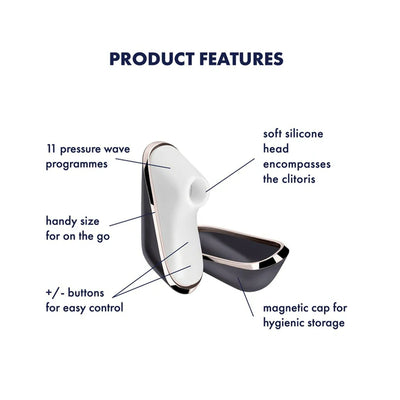 Whether you’re a frequent flyer or prefer road trips, the stylish cap magnetically seals your Satisfyer when you travel, making it a discreet and hygienic accessory. With 11 programs, this handy pressure wave vibrator will get your blood pumping. And thanks to the waterproof design, you can even enjoy pulsating orgasms even in your hotel bathtub. The integrated rechargeable batteries are easy to charge via a magnetic USB charging cable so it’s always ready for your next exciting trip.